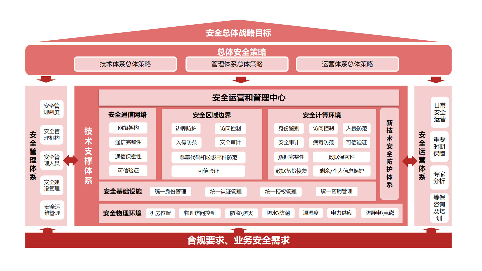 基于等保2.0“一个中心、三重防护”的安全能力体系,从技术、管理、运营三方面构建安全防御能力,提供从前期系统定级备案、等保差距分析,中期安全整改实施,后期测评与应急保障构成的等保生命周期安全服务。