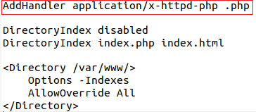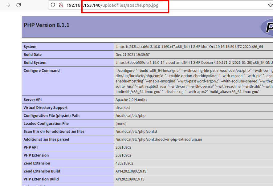 运维人员在 Apache的配置文件“httpd.conf ”中添加了对.php后缀增加了处理器:“AddHandler application/x-httpd-php .php”。在有多个后缀的情况下,只要一个文件含有.php后缀(.php不需要是最后的后缀)的文件即将被识别成PHP文件。利用这个特性,将会造成一个可以绕过上传白名单的解析漏洞。