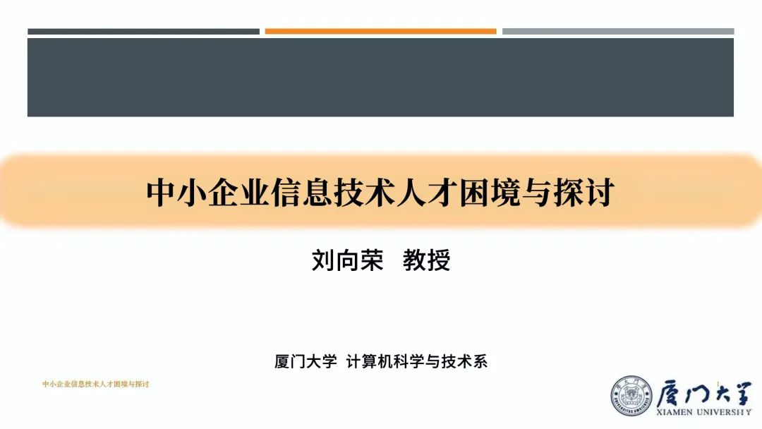 优秀信息技术人才储备是时代课题。厦门大学信息学院计算机系,教授、博士生导师、系主任刘向荣教授着眼于目前中小企业在中高端信息技术人才方面的需求和缺口矛盾,作《中小型企业信息技术人才的困境和探讨》主题分享。
