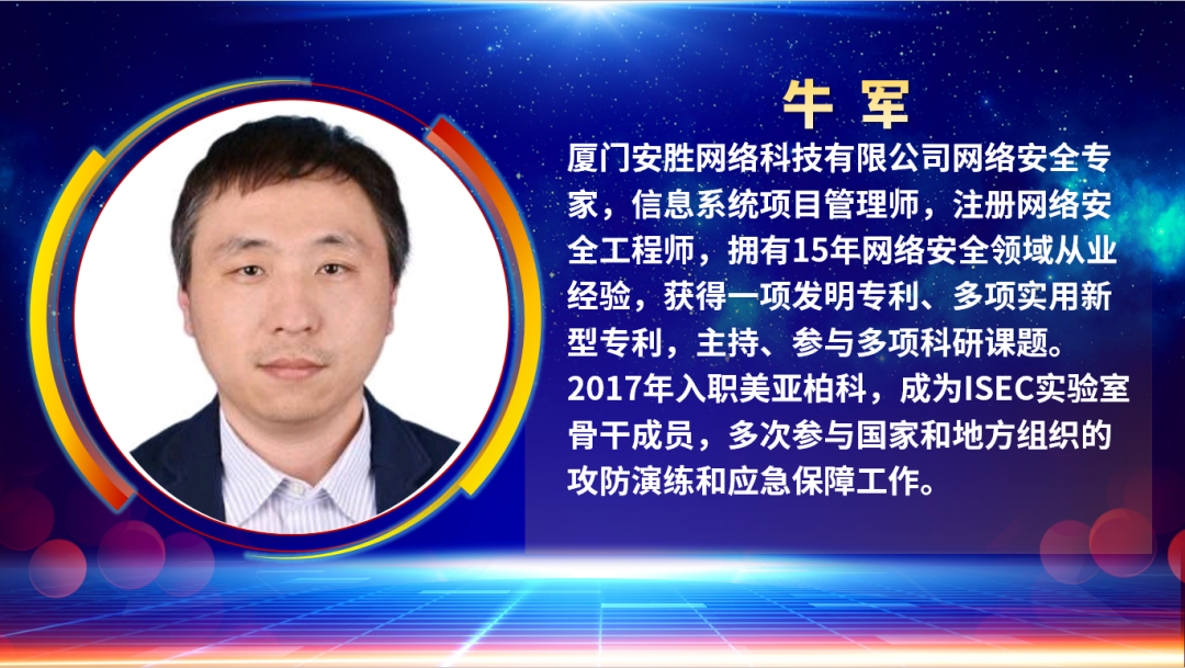 牛军以“矛”与“盾”形象说明网络空间安全的攻防关系,深入讲解安全演练对持续加强政企网络安全防护体系建设,强化相关部门网络安全主体责任,加强网络安全闭环管理与跨系统应急协同、联防联控机制,提高数字政企整体安全防护能力的促进与帮助,并从流程、组织建设、制度建设、技术建设等多个方面给出防护体系建设的解决方案。