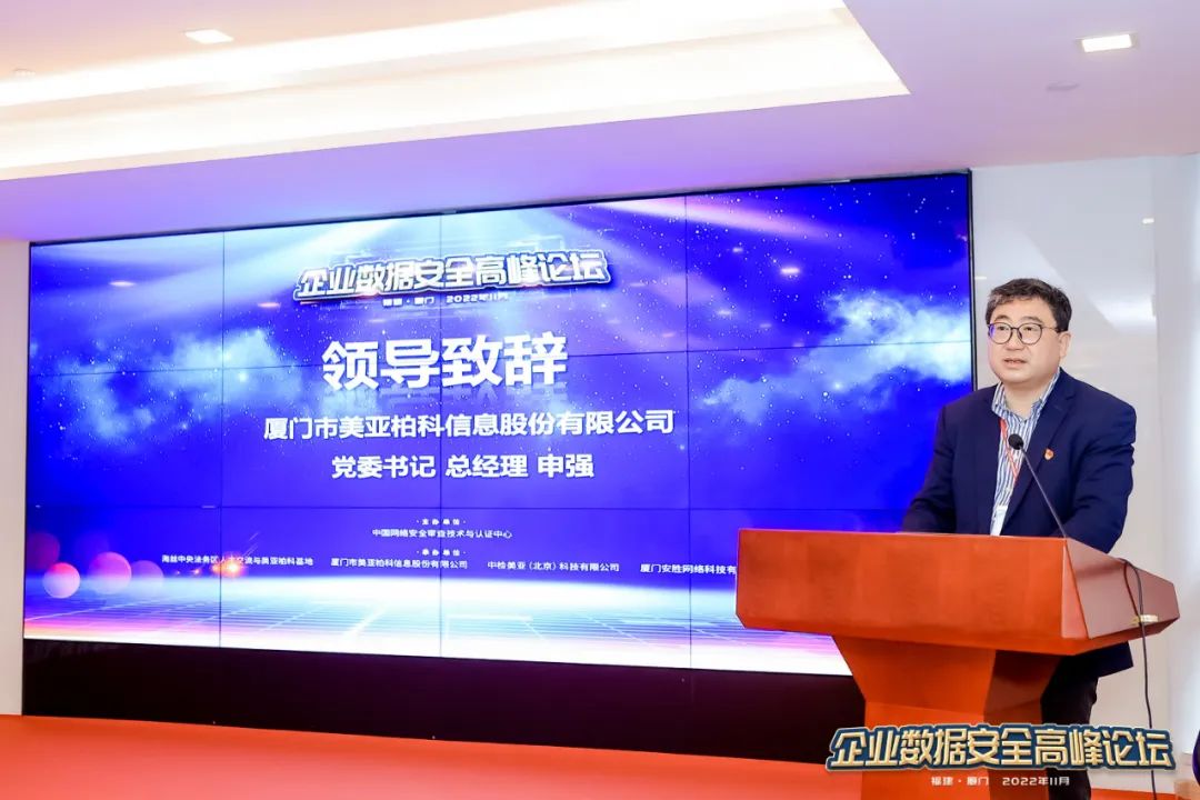 2022年11月15日,由中国网络安全审查技术与认证中心主办、海丝中央法务区人才交流与培训基地(美亚柏科基地)、厦门市美亚柏科信息股份有限公司及其控股子公司中检美亚(北京)科技有限公司、厦门安胜网络科技有限公司承办的首届公益性“企业数据安全高峰论坛”在美亚柏科培训基地举行,线上线下同步开讲。