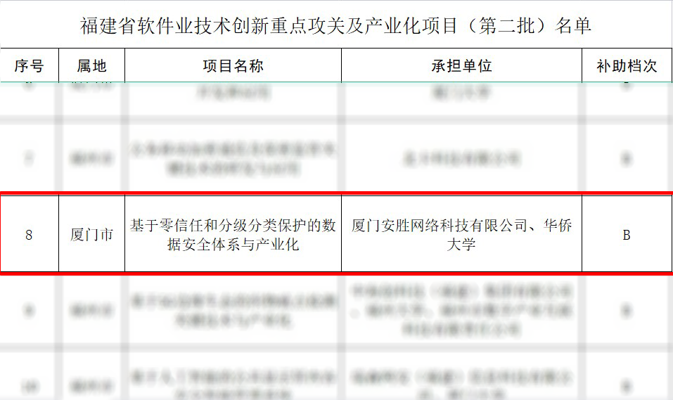 近日,福建省工业和信息化厅发布了福建省软件业技术创新重点攻关及产业化项目(第二批)入选名单,厦门安胜网络科技有限公司携手华侨大学,凭借“基于零信任和分级分类保护的数据安全体系与产业化”项目成功入选!