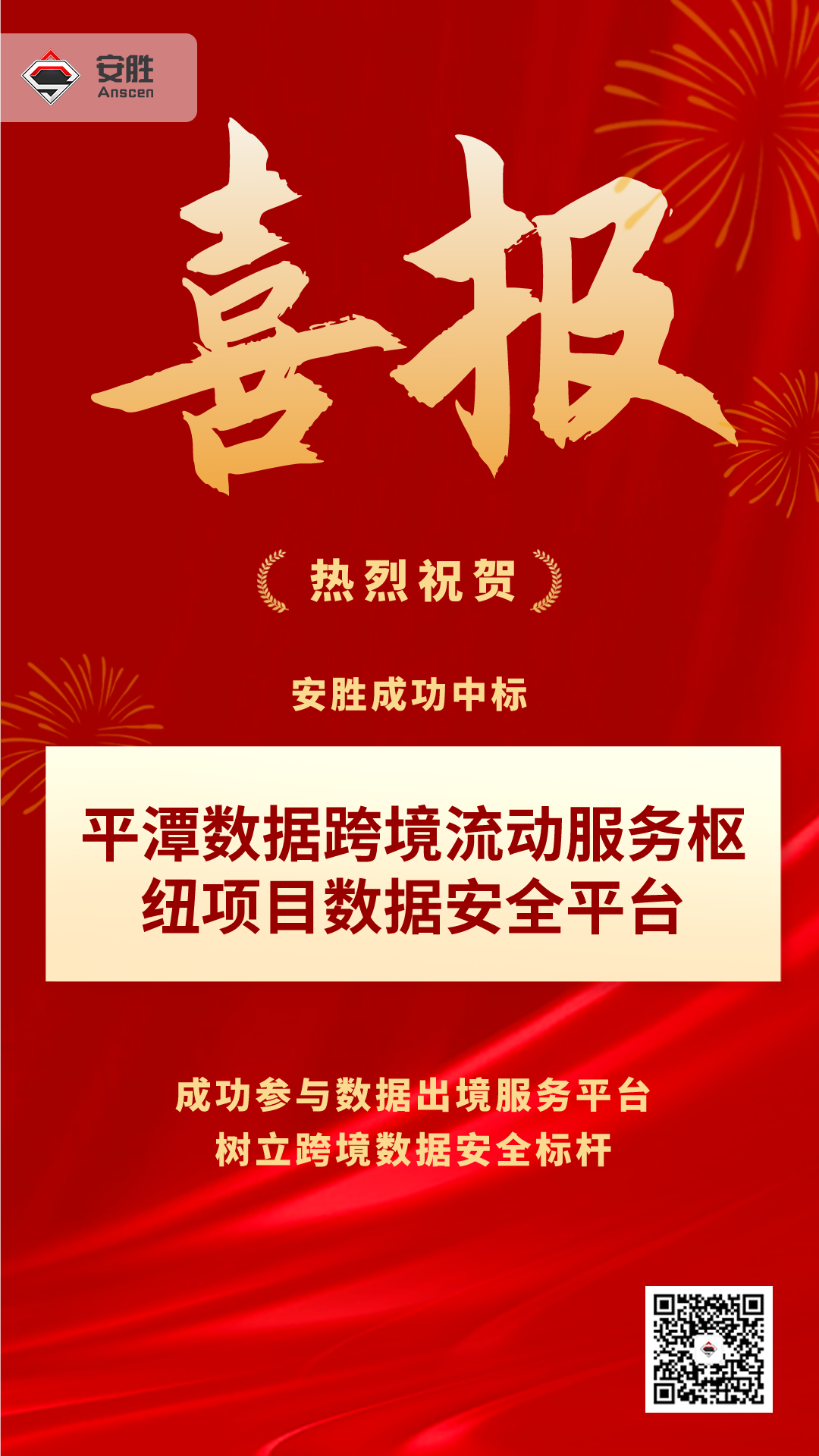 此次能够中标数据跨境流动服务枢纽项目数据安全平台,是客户单位对安胜在网络安全、数据安全领域的专业能力和业务水平的认可。未来,安胜将充分发挥自身优势,与客户单位携手树立跨境数据安全标杆!