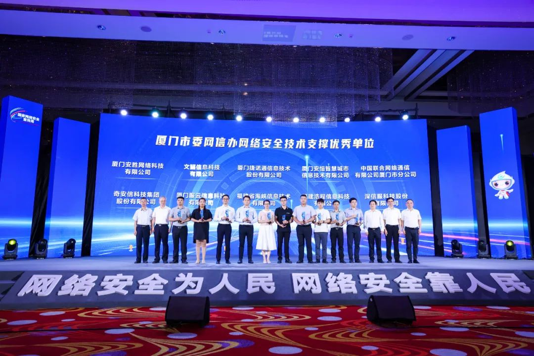 凭借出色的综合实力、网络安全技术和服务保障能力,安胜被授予“厦门市委网信办网络安全技术支撑优秀单位”称号。