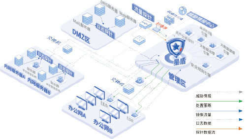 平台汇聚终端安全、流量探针、主机日志探针、蜜罐等多源设备数据,联动封堵器、防火墙等,建立全方位、立体化的防御方案,解决工作中专业人才不充足、防御能力不均衡、安全产品不联动、威胁情报不同步、应急响应不及时等问题。