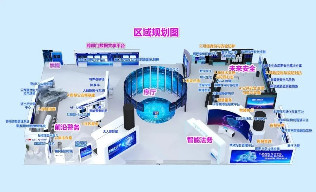 本次展会聚焦人工智能大模型、区块链、大数据在前沿警务、未来安全、智能法务等领域的深度应用,将设置主题场景馆和产业生态馆两大展区,通过沉浸式场景体验,展示当前警安法务科技前沿技术和发展趋势。