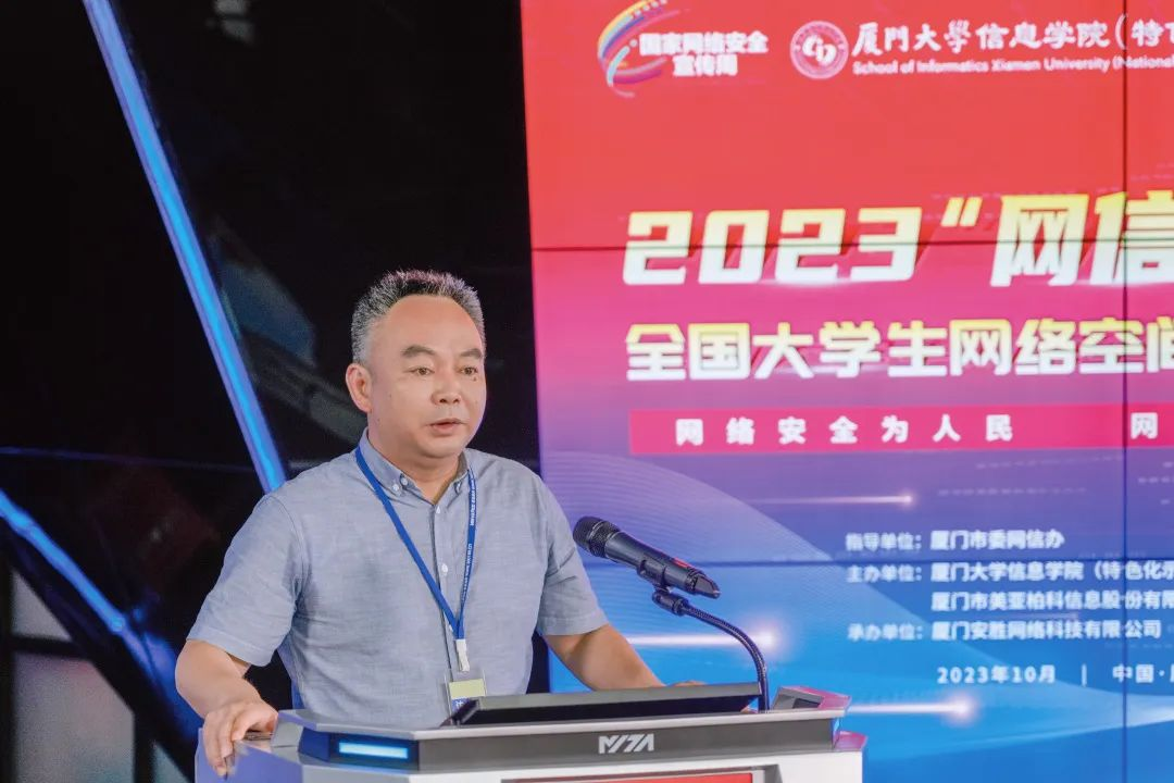 厦门市委网信办副主任张智,厦门大学信息学院党委副书记郑镇锋,厦门市美亚柏科信息股份有限公司常务副总经理栾江霞出席开赛仪式并致辞。厦门安胜网络科技有限公司总经理许光锋等多位赛事指导单位、主办单位、承办单位领导出席。