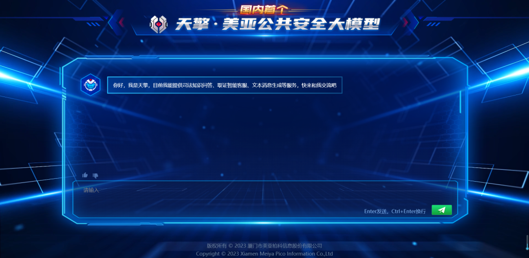2023年6月28日,国投智能(美亚柏科)在2023美亚柏科“智会”生态合作大会上重磅发布国内首个公共安全行业大模型“天擎”,并于2023年9月8日在2023中国(厦门)国际警安法务科技展现场发布“天擎”公共安全大模型信创一体机。