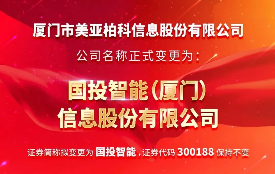 2023年6月,美亚柏科由国投集团总部直接管理,集团对美亚柏科保持现有差异化管理方式。2023年12月,“厦门市美亚柏科信息股份有限公司”正式宣布更名为“国投智能(厦门)信息股份有限公司”,证券简称“美亚柏科” 变更为“国投智能”,公司证券代码“300188”保持不变。“美亚柏科”作为公共安全产品和行业品牌,继续发挥其在电子数据取证、公共安全大数据等方面的行业影响力,为公司新一轮高质量发展再建新功。