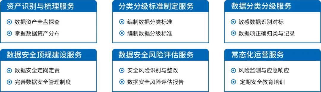 数据分类分级是数据安全的基石,面向组织数据和个人信息对数据资产进行发现与梳理,对企业数据进行分类分级标识并形成数据分类分级目录,最后对数据目录进行审核、上报备案,并且动态更新管理。