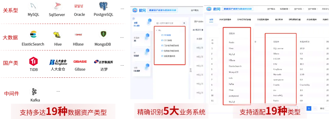 通过数据分类分级-“数网”数据资产梳理与数据库扫描系统扫描探测医院指定网络范围内存在的关系型、非关系型数据库资产,输出数据资产清单和风险评估报告,有效防范数据资产漏审和私设数据库等资产管理风险。