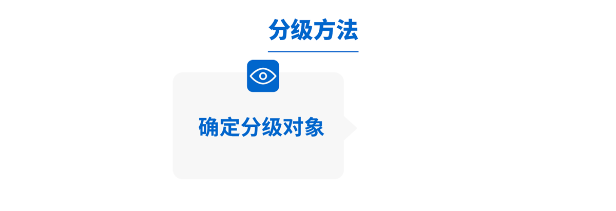 - 确定分级对象:确定待分级的数据,如数据项、数据集、衍生数据、跨行业领域数据等。