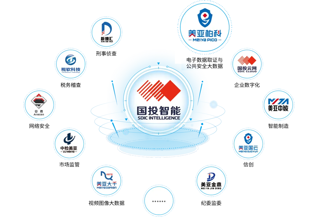 2023年12月,“美亚柏科”正式更名为“国投智能”,被赋予了新的使命和定位。为实现子公司战略、品牌、管理、科创全面升级,公司细化子公司行业布局,打造更多“国投智能系”品牌,其中包括聚焦公共安全和公共安全大数据业务的“美亚柏科”,专注税务稽查和刑事侦查的“税软”和“新德汇”、服务产业及企业数字化转型的“国投云网”等。