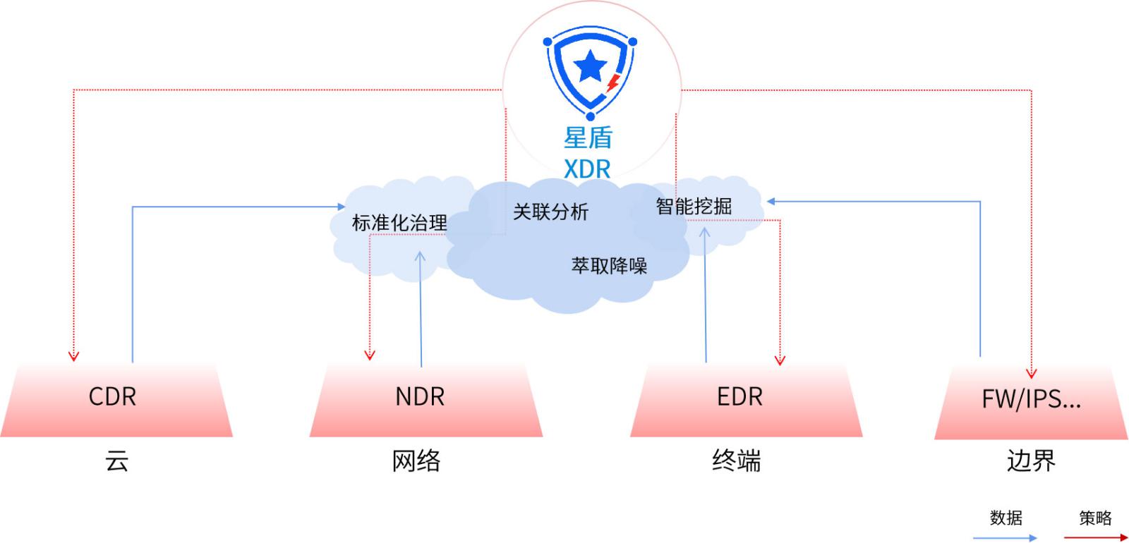 安胜“星盾”多源威胁检测响应(XDR)平台,一款基于“云、网、端、边”多源安全大数据的威胁检测与响应平台,可实现跨边界、跨区域、跨设备的全方位安全检测和响应。具备统一的数据治理、关联分析、告警降噪、联动封堵、行为画像、溯源取证等能力,以全局的视角进行安全分析研判、自动响应,从而实现企业网络空间安全的高效运营。