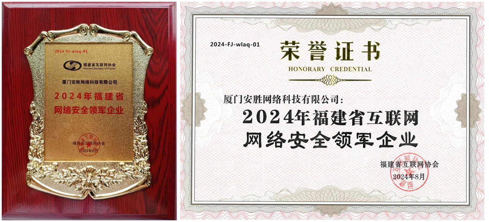 11月15日,2024年中国福建互联网大会在福建石狮举办。会上,福建省互联网协会对外发布了《福建省互联网行业发展报告(2023年度)》和2024年福建省互联网企业综合实力研究结果。其中,厦门安胜网络科技有限公司凭借在网络安全领域的突出实力和业务水平,荣获“2024年福建省网络安全领军企业”称号。