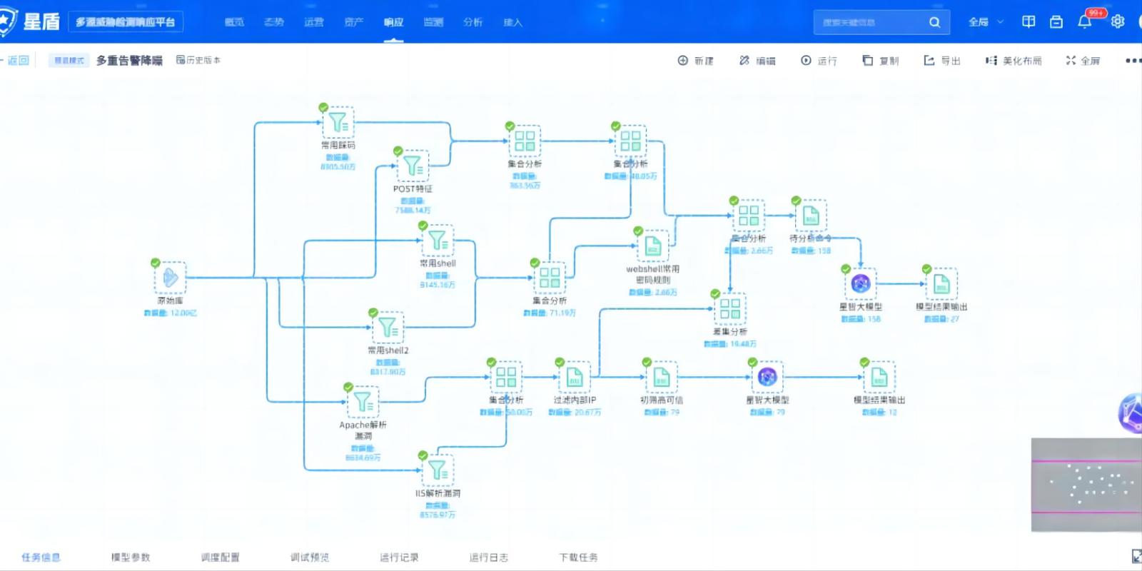 支持智能化响应剧本(SOAR)+大模型自动研判威胁性质和危害程度,实现主动防御,自动化将大多数攻击事件扼杀在信息收集阶段。一旦检测到威胁,平台会根据预设的策略自动执行相应的响应措施,及时遏制威胁的扩散,减少损失。