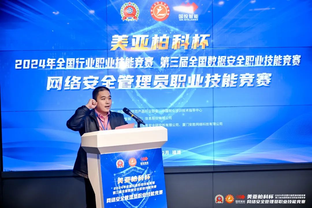 鹭岛风情天下秀,网安人才共潮涌。12月26日,由中国安全防范产品行业协会(以下简称中安协)和中国就业培训技术指导中心联合主办,国投智能(厦门)信息股份有限公司承办,厦门市美亚柏科信息安全研究所有限公司、厦门安胜网络科技有限公司协办的2024年全国行业职业技能竞赛——第三届全国数据安全职业技能竞赛暨第三届全国安防行业职业技能竞赛“美亚柏科杯”网络安全管理员职业技能竞赛总决赛在福建省厦门市美亚柏科培训基地盛大开幕。