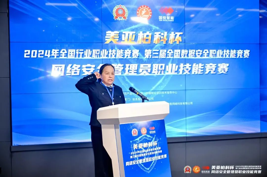 中安协副理事长陈朝武在致辞中代表协会对各位来宾的到来表示热烈欢迎,并感谢国投智能(厦门)信息股份有限公司对大赛的鼎力支持。陈朝武副理事长指出,当今世界网络安全风险不断激增,网络强国建设迫切需要打造一支高素质、创新型、复合型的网络安全人才队伍。技能人才是支撑中国制造、中国创造的重要力量,是加快培育发展新质生产力、推动行业高质量发展、全面建设社会主义现代化国家的生力军。她指出,本次竞赛以新时代中国特色社会主义思想为指导,深入学习贯彻关于技能人才工作的重要指示批示精神,是促进网络安全技能人才培养、推动职业技能培训和弘扬工匠精神的重要舞台,对营造劳动光荣、技能宝贵,更好服务就业创业和经济发展具有重要的支撑作用。她希望广大参赛选手赛出风格、赛出水平,奋勇拼搏、取得优异成绩,实现以赛促训、以赛促学,展现新时代安防技能人才的卓越风采,为中国式现代化作出应有贡献。