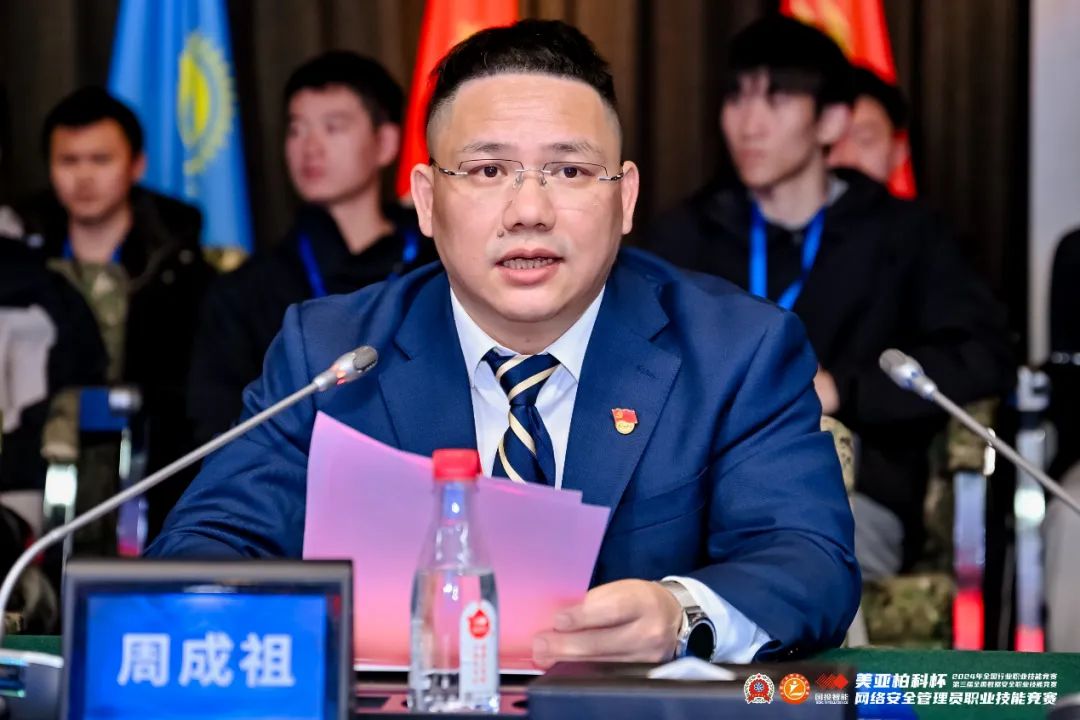 国投智能(厦门)信息股份有限公司党委副书记、总经理周成祖代表赛事承办方向远道而来的领导嘉宾以及踊跃参赛的各位选手表示热烈欢迎!他指出,随着新一代信息技术发展与网络强国战略深入推进,网络安全人才培养与实战能力建设已成为新时代的新命题。他介绍,国投智能始终将“人才培养”纳入公司整体战略布局,不断探索产学研协同育人的新模式、新机制,常年承办网络安全、电子数据取证等高技能竞赛及行业论坛,持续为提升我国网络安全、数据安全领域的技术水平和能力,培养数据安全管理人才贡献力量。他预祝本次大赛取得圆满成功,各位参赛选手取得理想成绩。