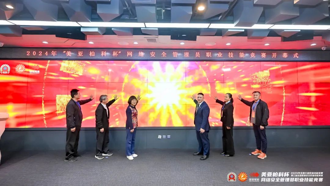 陈朝武、陈水利、周成祖、吴敏萍、冯杰忠、毕马宁六位领导共同启动倒计时环节,2024年全国行业职业技能竞赛——第三届全国数据安全职业技能竞赛暨第三届全国安防行业职业技能竞赛“美亚柏科杯”网络安全管理员职业技能竞赛总决赛正式开始。