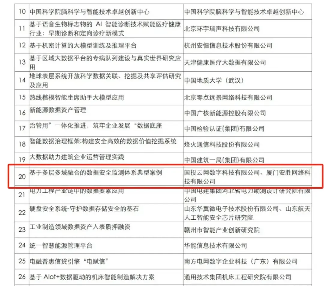 安胜与国投云网组建的“国投云网-厦门安胜”,其选送的参赛作品《基于多层多域融合的数据安全监测体系》在中国信息协会数据要素应用创新大赛决赛中荣获三等奖。