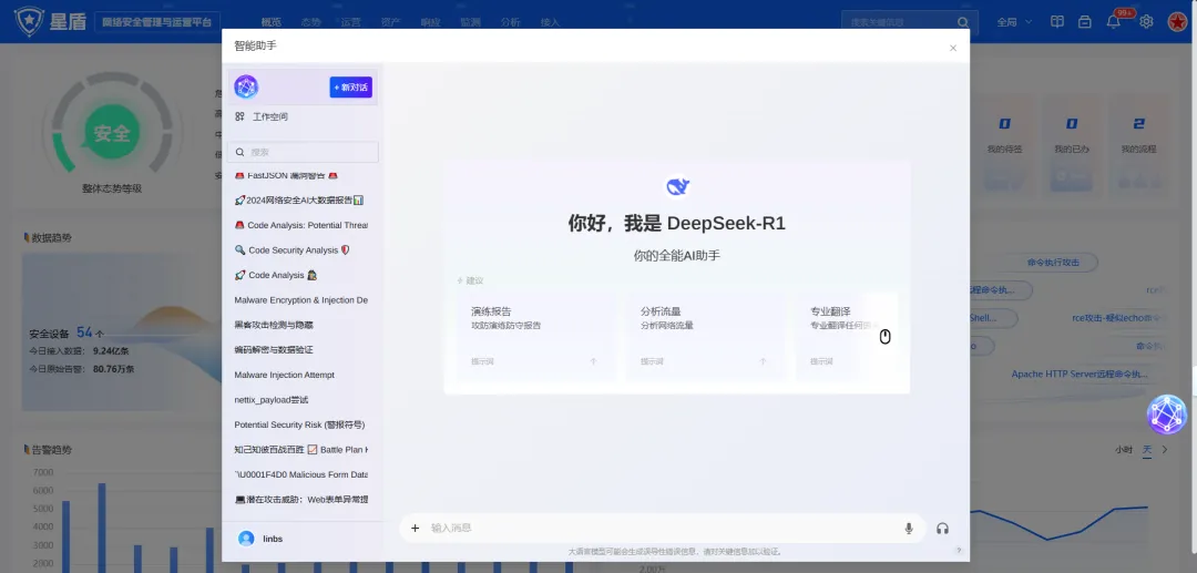 基于DeepSeek深度逻辑推理能力,“星盾”显著提升了自动响应智能化水平,有效降低处置成本。
