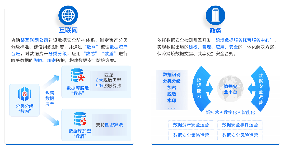同时,安胜积极推动智能化、流程化、行业化的数据安全场景落地,提供涵盖数据安全顶层规划、分类分级、风险评估、跨境评估等20多项的安全服务能力,保障全链路全场景的数据安全。