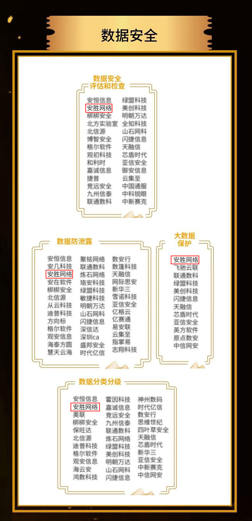 安胜凭借丰富的行业经验、过硬的技术能力、专业的服务以及品牌影响力等综合优势连续多年入选FreeBuf、安全牛、数说安全、数世咨询、嘶吼、中国信息通信研究院“数据安全护航计划”等多个行业图谱。未来,安胜将继续发挥品牌优势,持续加强核心技术创新,不断升级产品服务,为筑牢数字安全屏障、护航数字经济高质量发展贡献专业力量。