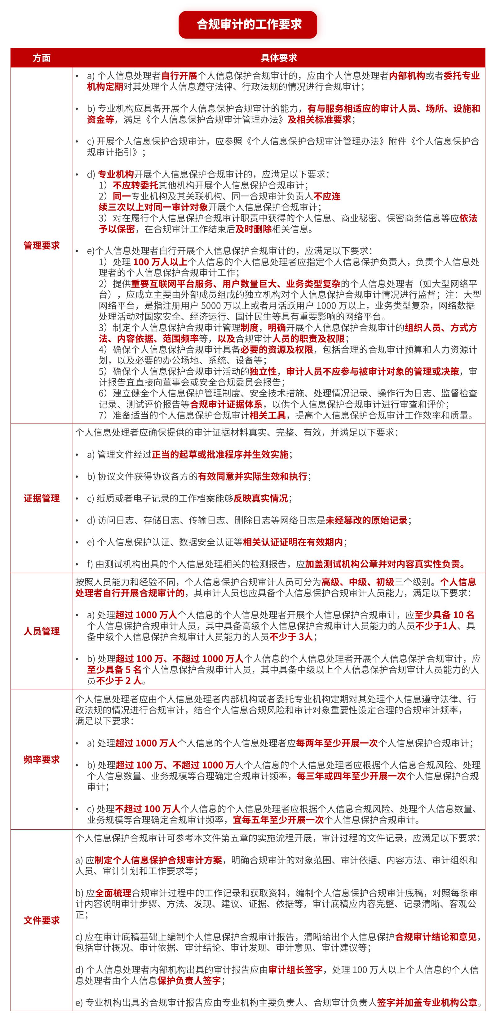 应遵循五大方面的要求:管理要求、证据管理、人员管理、频率要求、文件要求,构建合规审计的完整体系。