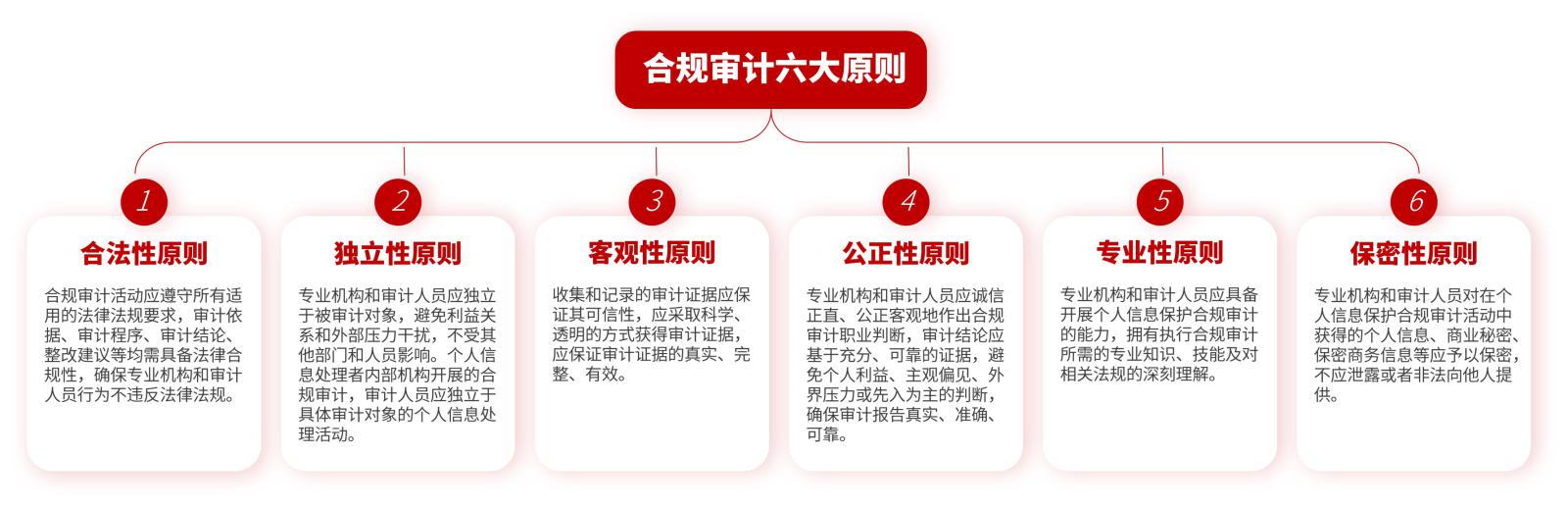 个人信息处理者和专业机构开展个人信息保护合规审计,应遵循合法性、独立性、客观性、公正性、专业性、保密性六大原则,确保审计的权威性和有效性。