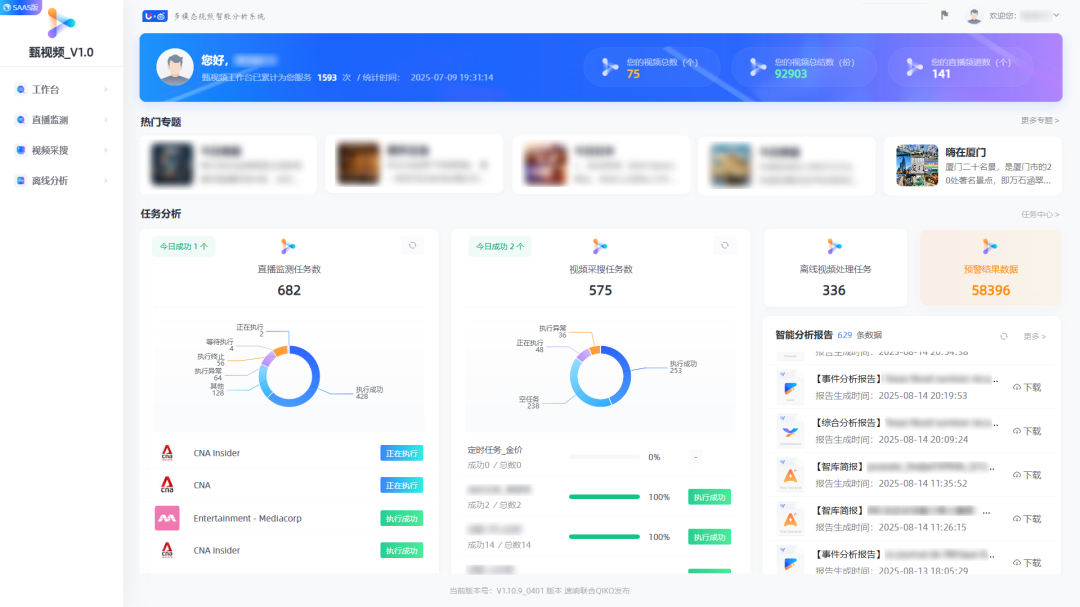 搭载跨平台采搜引擎,可智能分析直播、短视频及本地视频内容;通过简单的规则配置,即可实现自动采集、精准分析快速识别关键信息并提炼核心内容。