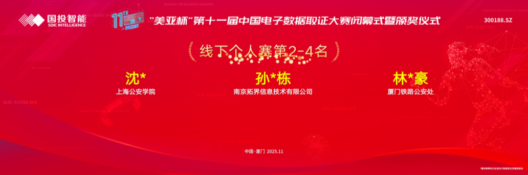 2025年11月14日至16日,由中国电子数据取证大赛组委会组织,教育部相关教学指导委员会、中国刑事科学技术协会指导,教育部网络安全与执法专业虚拟教研室主办,国投智能信息科技股份有限公司承办的“美亚杯”第十一届中国电子数据取证大赛暨数智安全新技术研讨会在厦门举行。