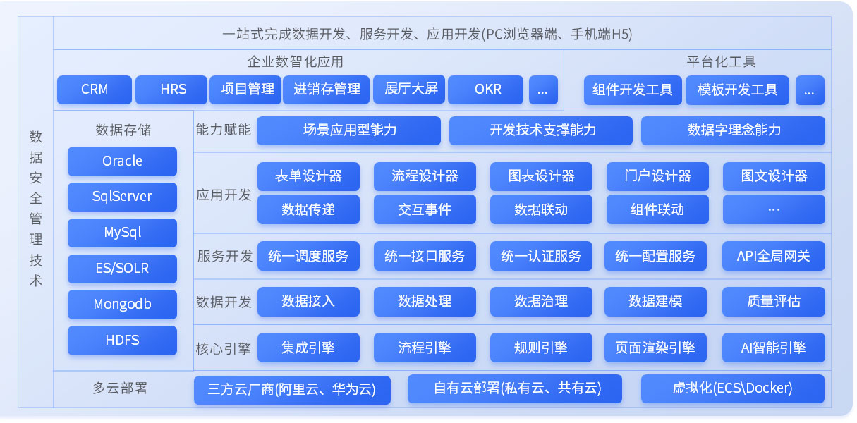 数字化工具的安装包含两种方式。第一种是公有云 SaaS 服务账号开通。支持客户可直接在安胜的SaaS上新建、设计应用、发布,同时也支持下载应用于于企业内部网络中部署。第二种是私有化部署,支持客户把速响开发平台部署在自己的内网中。